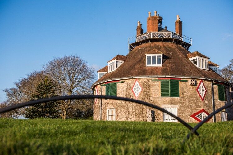 Follow the field round keeping the hedge on your right, turn left up to the A376. When you reach ‘The White House’ at the cross roads go straight over up Summer Lane passing A la Ronde, a National Trust 18 sided property on your right. You can stop to enjoy the views from the gardens.